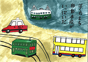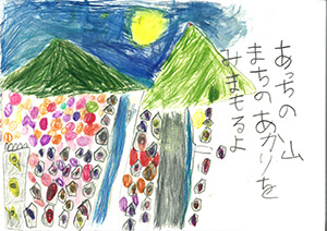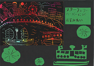 We are sorry that we could not include everyone: children who lived in towns with tall buildings situated between mountains and the sea; in energetic and bustling towns with streets filled with motorbikes; in towns that experience subtropical squalls; and children who were moved by verdant trees in summer and falling leaves in late autumn; who drew beautiful sunsets of their city; who spent a heartwarming time with their family during a cold winter night; who were excited over colorful festivals, and so on, but we were so pleased to receive a wide variety of reports from alll over the world.