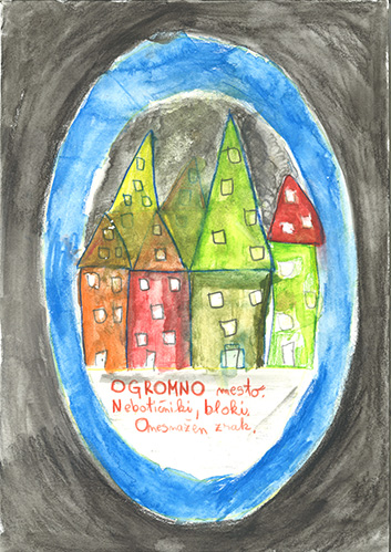 Solitary skyscrapers, houses,
