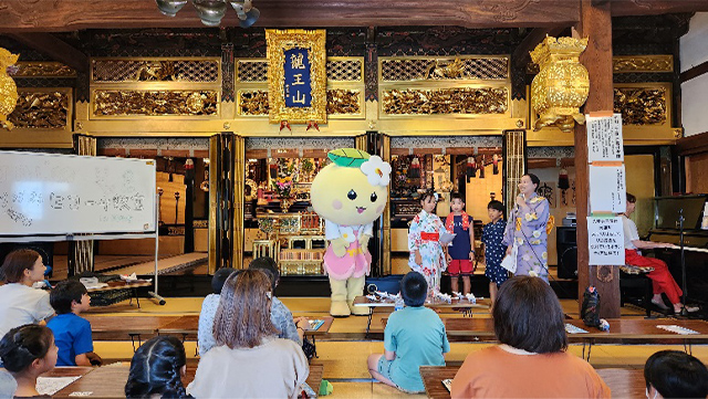 それから、大淀町のマスコットキャラクターである「よどりちゃん」が登場した。初めて日本のマスコットを間近で見る経験で、子どもたちに負けないくらい私自身も興奮した。みんなでじゃんけんゲームをしたとき、よどりちゃんは手がチョキを作ることができなかったため、両手を合わせてチョキを表現した。その姿は本当に可愛かった。
