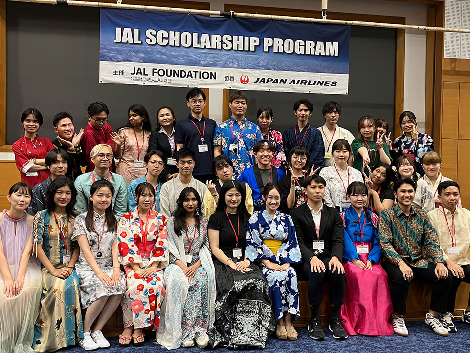 JALスカラシッププログラムは、1975年以来、アジア・オセアニアの大学生・大学院生を毎年、日本に招待し、研修や文化交流を通じて日本への理解や、国境を越えた相互理解を深めていただき、将来のアジア・オセアニア地域を担う若者を育成することを目的として開催しております。