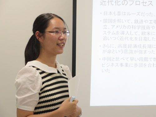 在全球化的初期阶段,由于国家、区域之间的文化背景不同,无法进入相同的语境,所以低语境的沟通方式适用于目前的跨国交流。加之世界的联系日益紧密,文化交流的势头强劲,不同文化之间进行碰撞、融合,再往后,我们将很难简单的归纳某一国的特征。如果对全球化的最终阶段进行大胆的推测,可能所有文化的融合在一起,变成一个终极高语境的社会。我并不希望它发生。正因为彼此之间有不同,才能给予互相刺激、启发,在那基础上不断创新,才能推动人类社会不断进步。所以,我希望中国和日本都能在各种文化的冲击面前平衡与传统的关系,坚持各自独特的文化个性。对于一个学习语言的人来说,像这样能够对中国和日本的文化进行比较,不仅能更好理解日本,对一直以来没有特别注意的自己国家的文化习惯也有了新的认识。为了能够不断拓展新的视野,我更欢迎彼此更多不一样的东西。