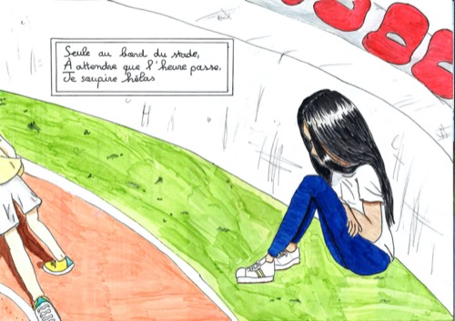 Seule au bord du stade